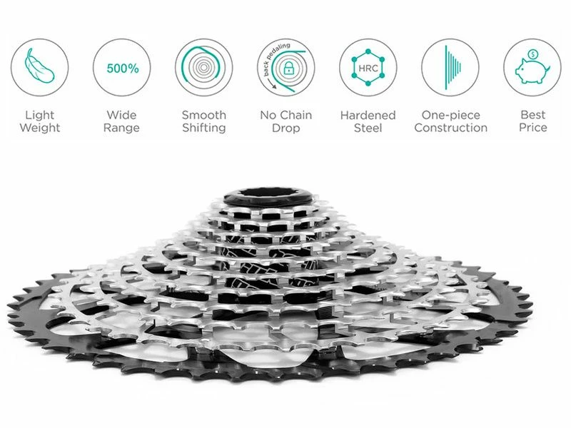 –  11-13-15-17-20-24-28-32-36-45-50 (11-50T) - 10 premiers pignons en acier inoxidable