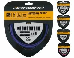 Le kit câbles et gaine de dérailleur Jagwire Universal Sport est composé d’une gaine LEX-SL et de deux câbles en acier inoxydable à double tête pour être compatible avec les transmissions Shimano, Sram et Campagnolo. La gaine LEX est constituée de brins en acier linéaires enroulés autour d’un liner prélubrifié (Slick Lube). Le kit est disponible en plusieurs coloris.