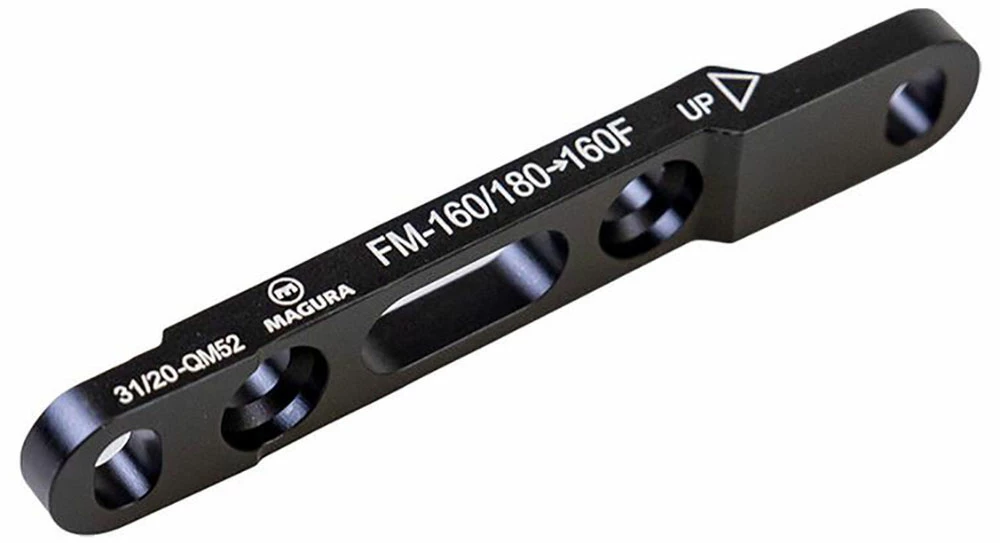 The QM 52 adapter from Magura allows the use of 160mm / 180mm brake discs. The adapter is screwed onto the flatmount socket of the fork and shifts the flatmount brake calliper to the required size.