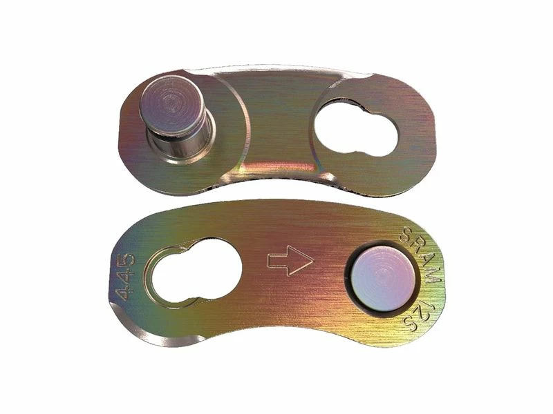 L’attache rapide Sram Powerlock 12 vitesses est uniquement compatible avec les chaines 12 vitesses de la marque. Attention de bien respecter le sens de montage indiqué à l’arrière de l’emballage ainsi que par les flèches présentes sur les plaques de l’attache (cf photo).